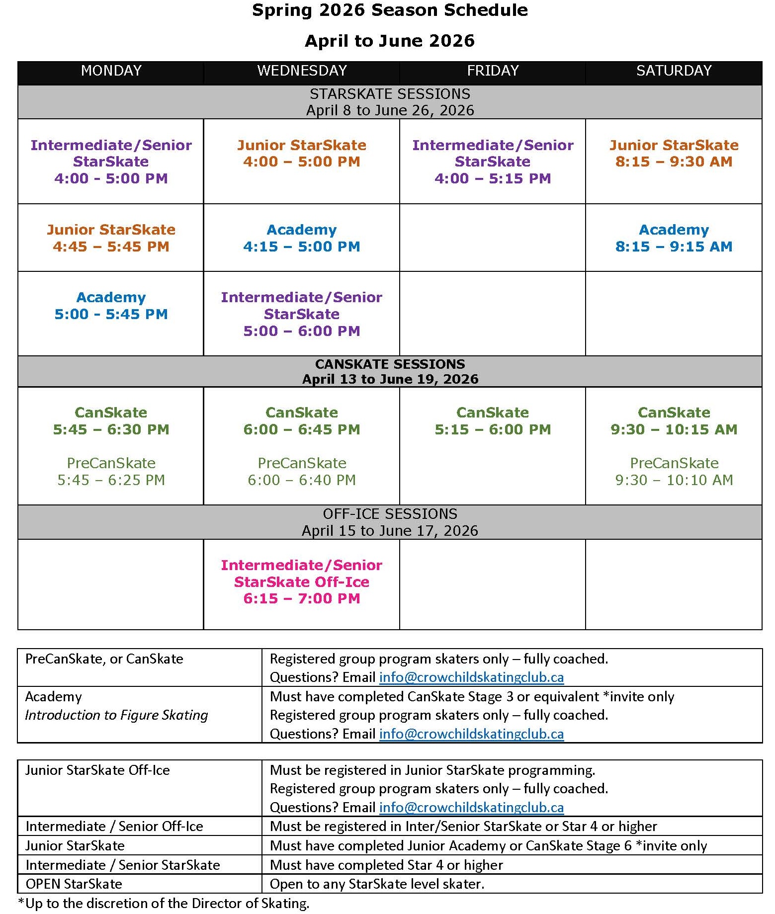 SPRING 2026 CanSkate and PreCanSkate schedule to be posted soon!